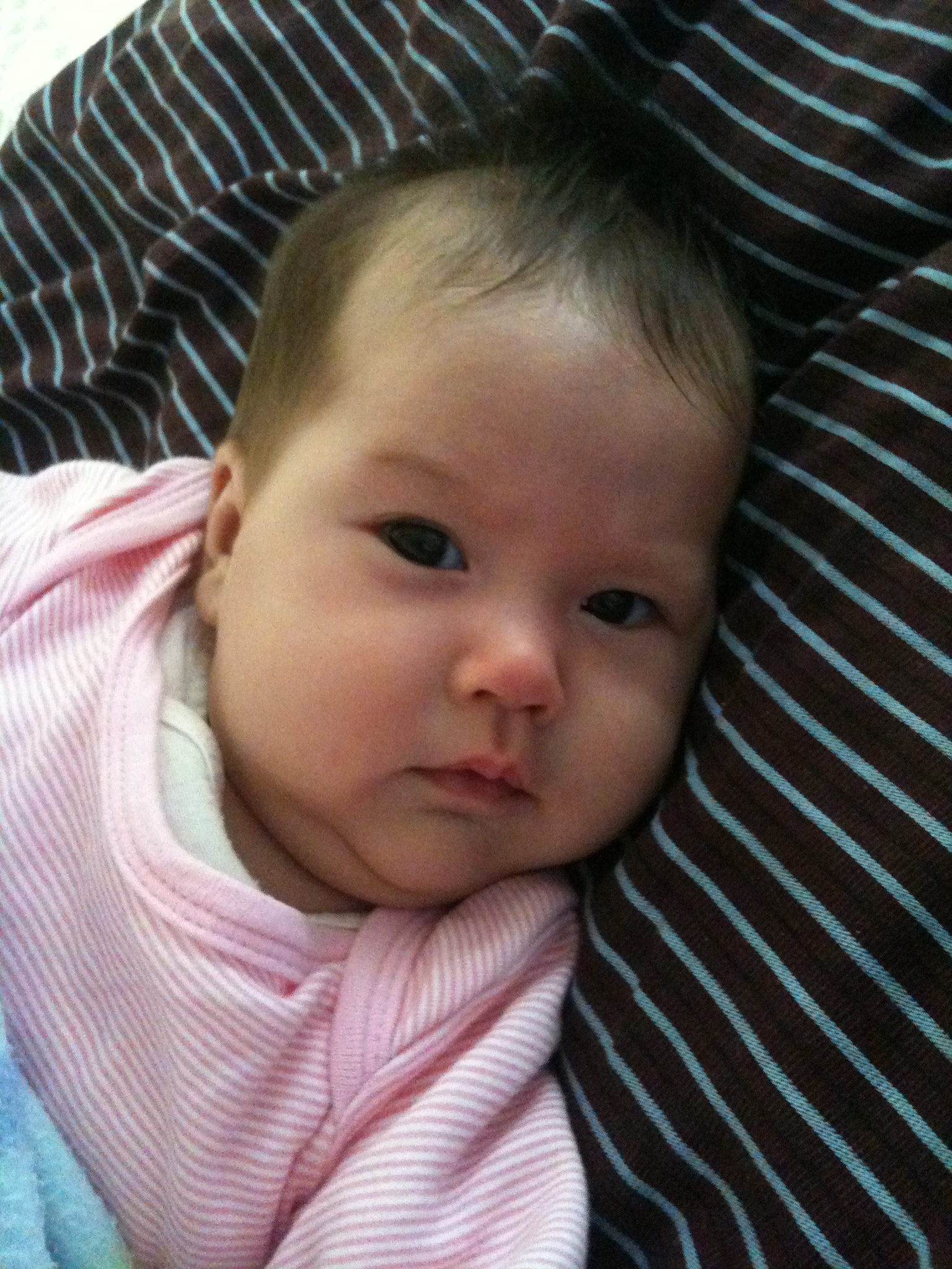 Right: First time I applied the '4th Trimester' techniques to get her to bed fast. Worked amazingly well, but she woke up screaming which is highly unusual (she usually smiles, looks around, hangs out, etc). Perhaps we're already past the 4th trimester stage...
