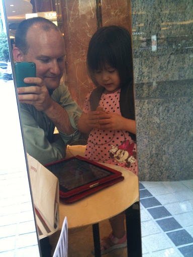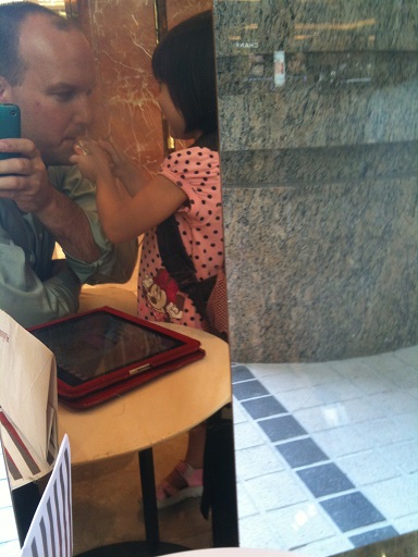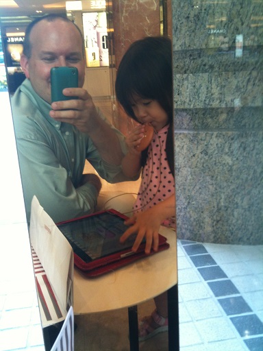 She has no idea right now who the man standing beside her is Blowing her first diddy for Daddy A total natural Multitasking Hmm... iPad!