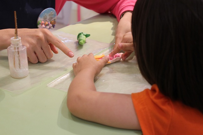 Lil Miss Sassy Girl Heck of an artist too! Adorable Doing her cute little thing Applying glaze to her clay sculpture of a pink peapod